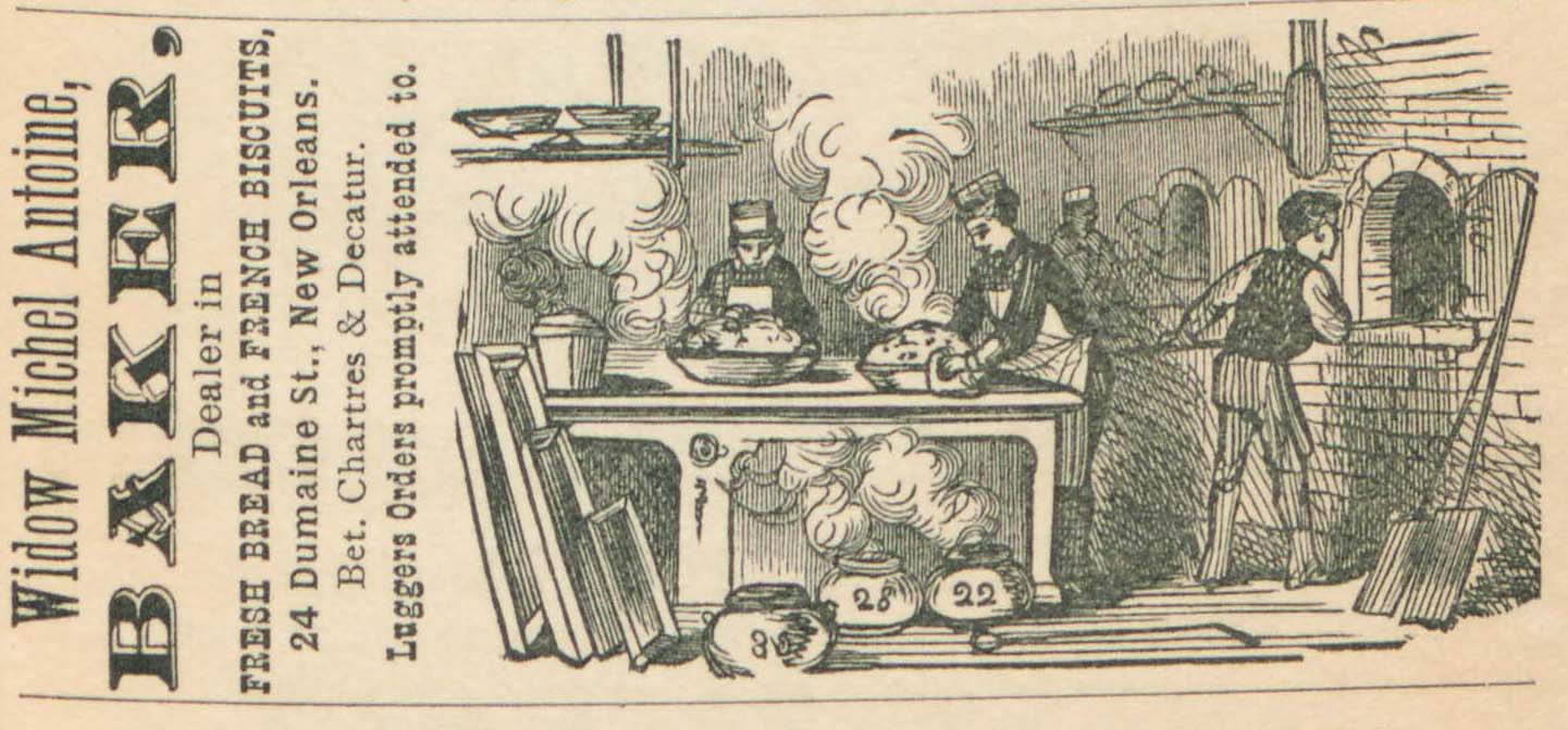 Michel Antoine, a native of France, operated the bakery at 24 Dumaine Street until his death in 1887. His wife carried on the family business at the same location after his passing.