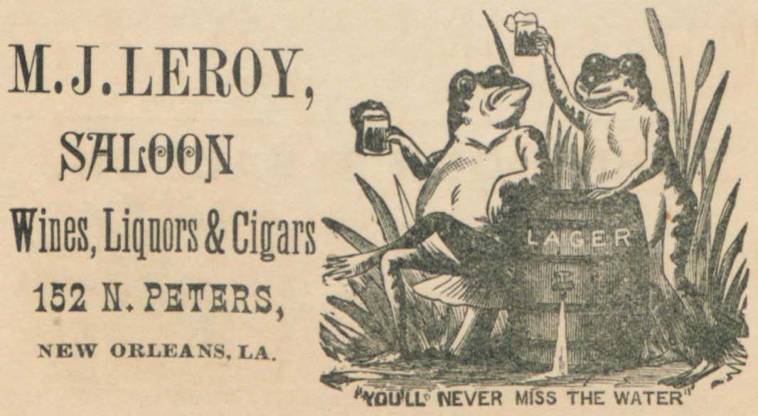 This advertisement for Hypolite Begue's saloon appeared in the 1903 Souvenir Program for the International Association of Chiefs of Police convention in the Crescent City.