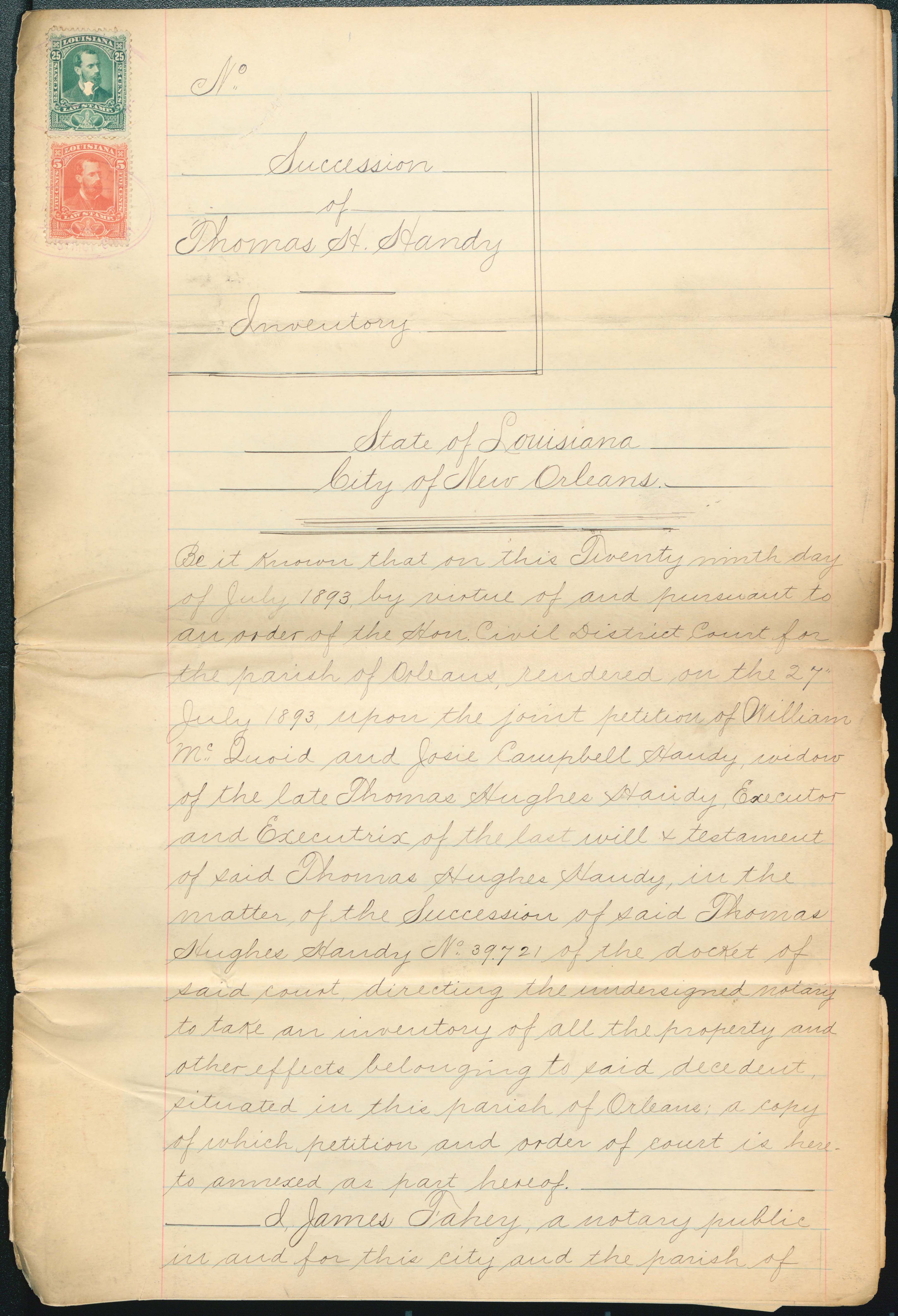 Civil District Court #30896. Click the images above to view the inventory. Contact City Archives & Special Collections to view the rest of the case.