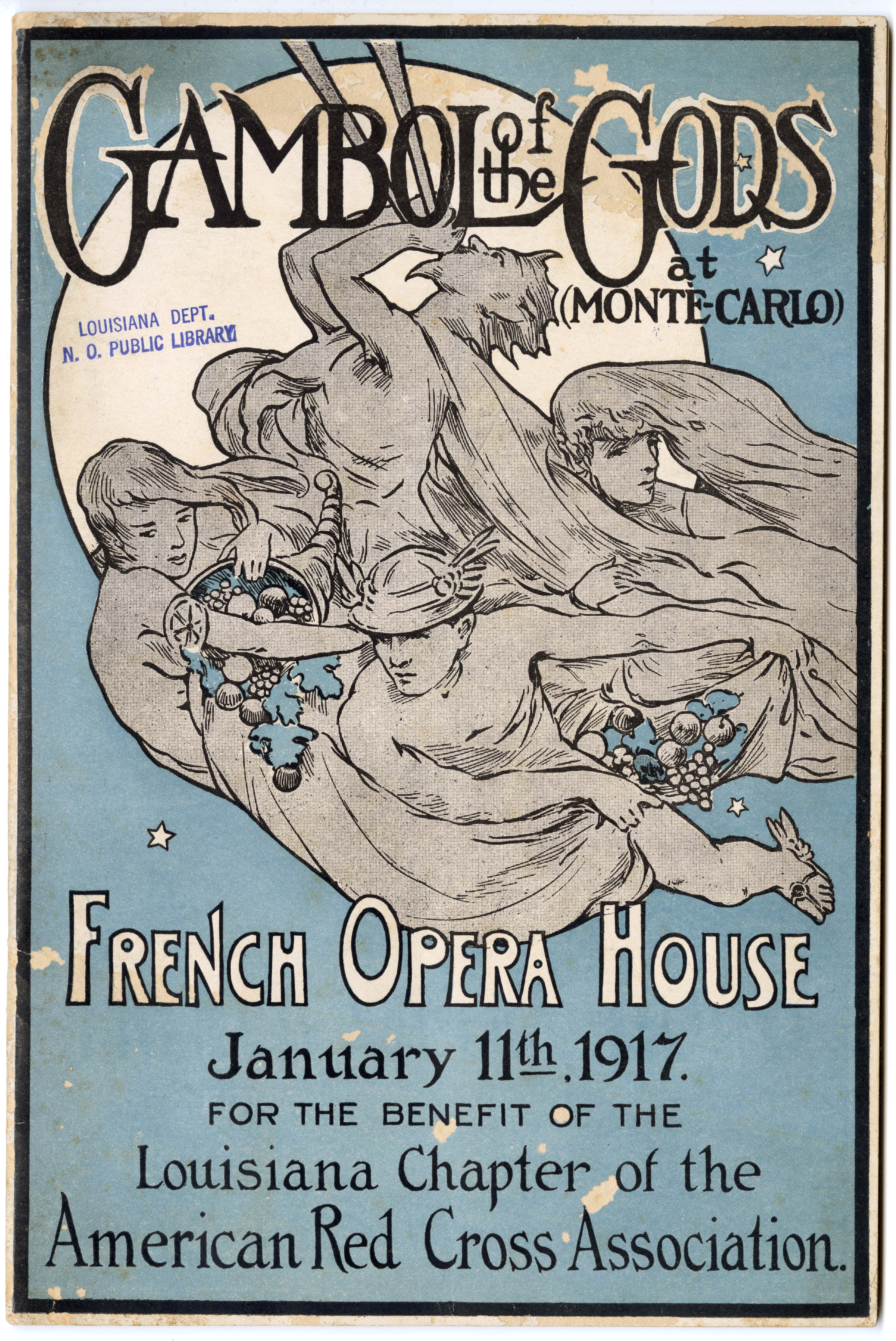 Program for the 1917 production of Gambol of the Gods at Monte-Carlo at French Opera House for the benefit of the Louisiana Chapter of the American Red Cross Association.