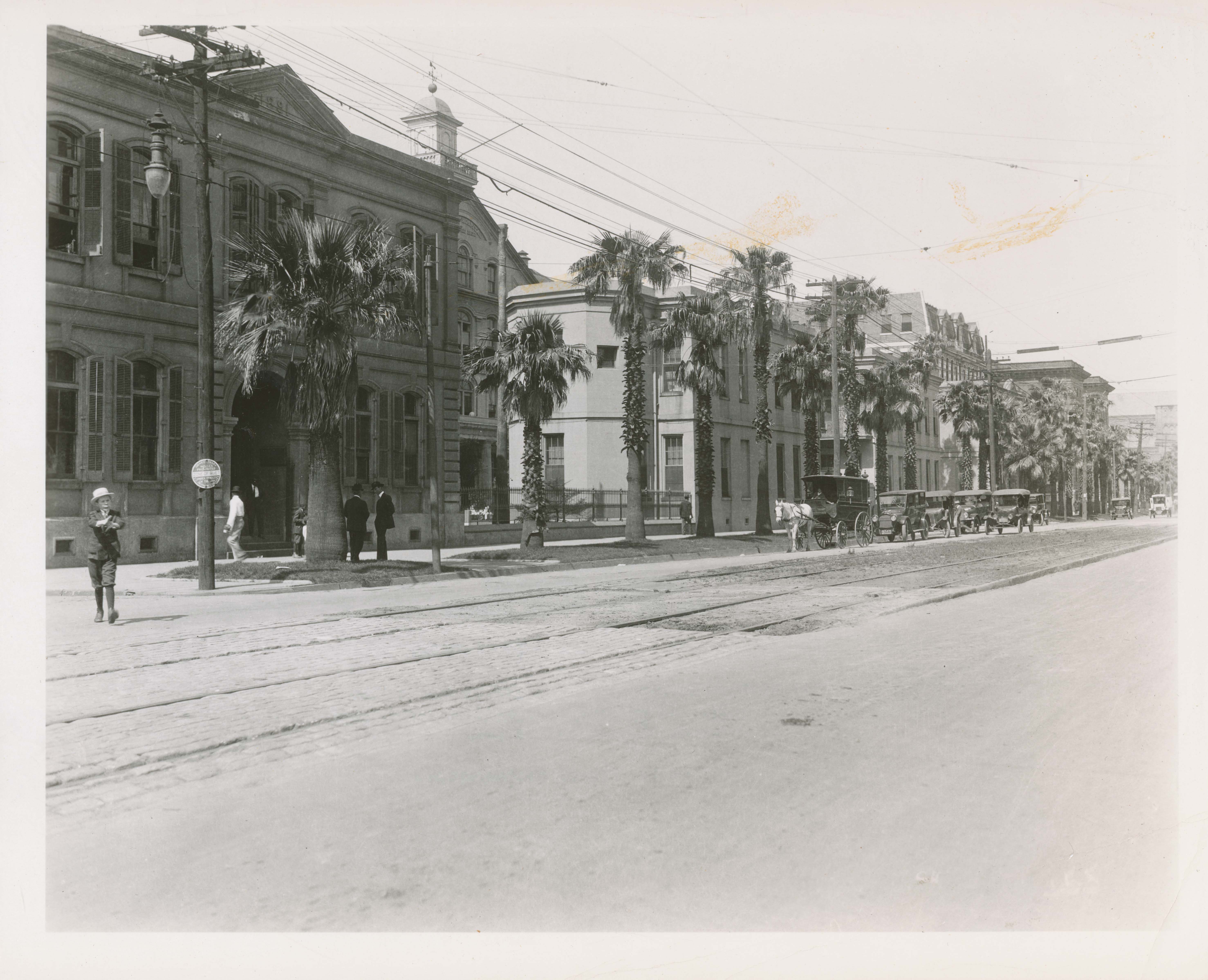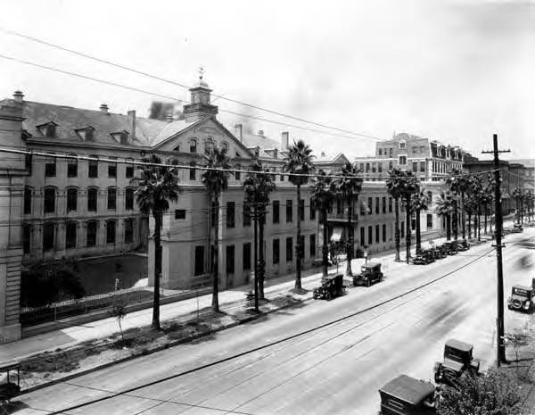 Palm trees decorated Tulane Avenue in front of Charity Hospital during the 1920s.